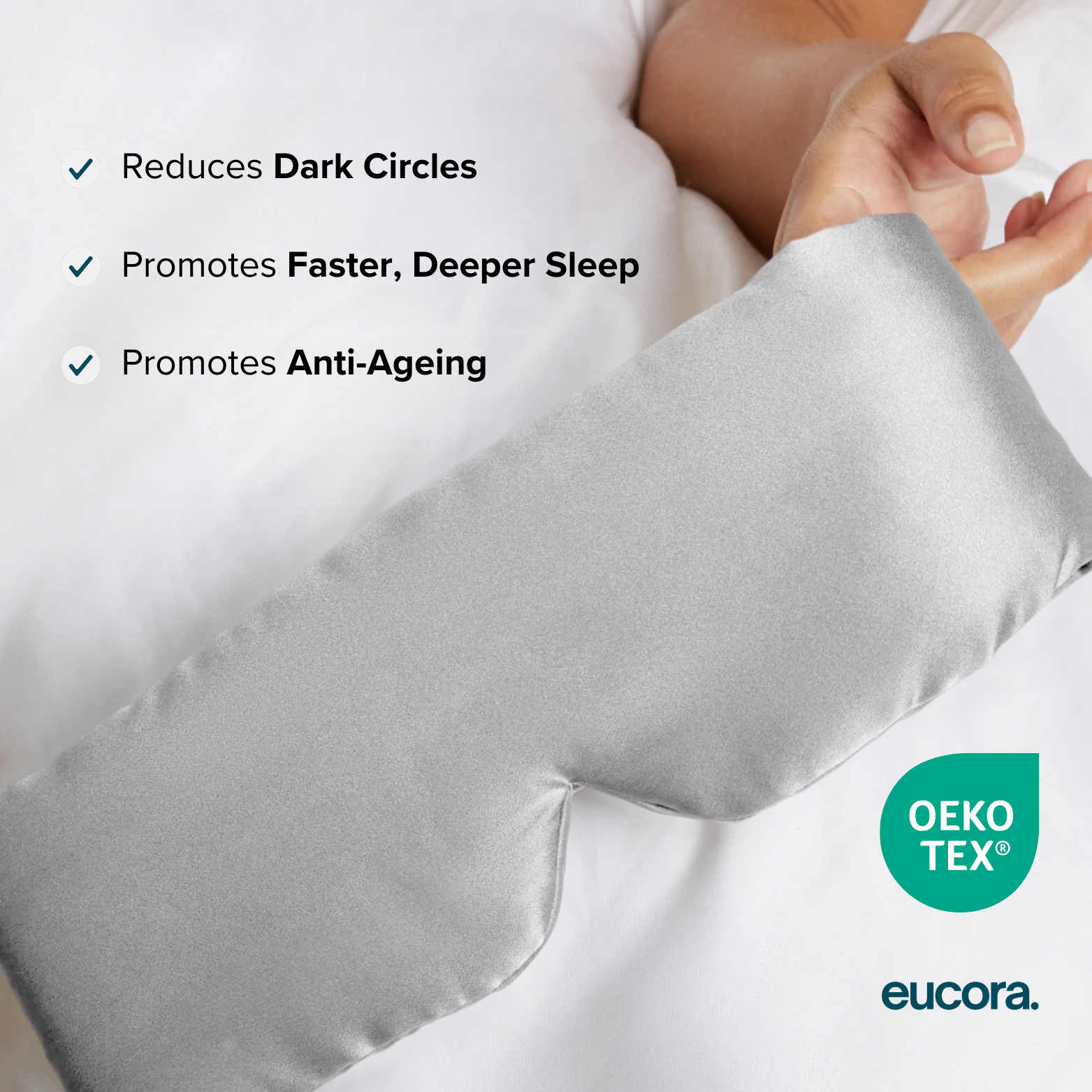 Experience deeper, more restful sleep with Eucora's Cooling Sleeping Eye Mask, made from a breathable blend of bamboo and eucalyptus fibers.